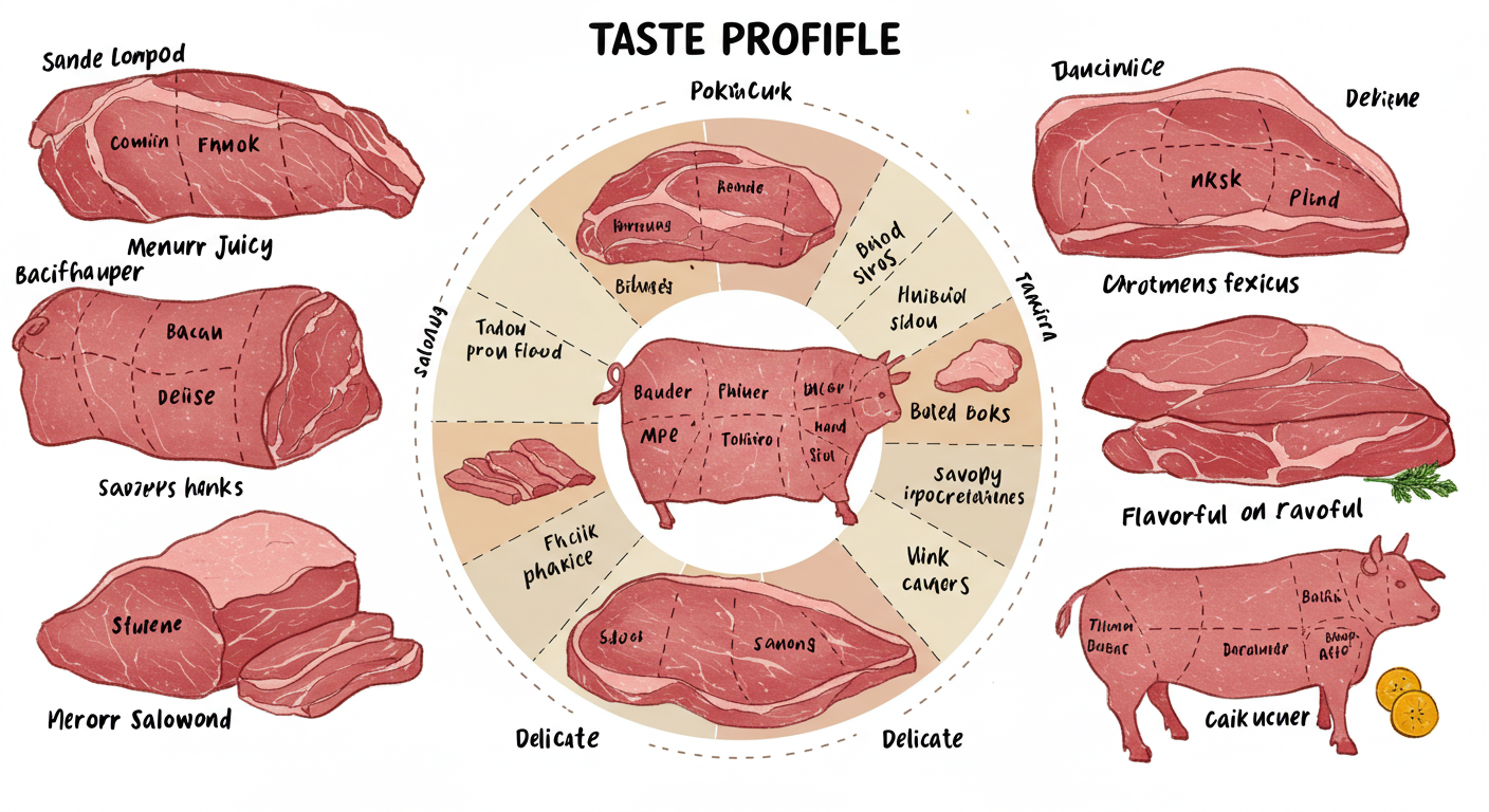 소고기, 돼지고기, 양고기의 주요 부위 & 특수 부위 맛 비교 가이드입니다.